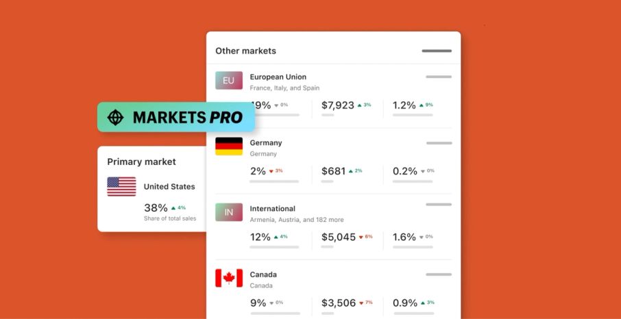 Markets Pro is a more full-featured tool to help your business operate globally. It helps with cross-border shipping and fulfilment and international tax filing. It also displays different options for local payment options and currencies, and automatically ensures users only see the products they can receive.