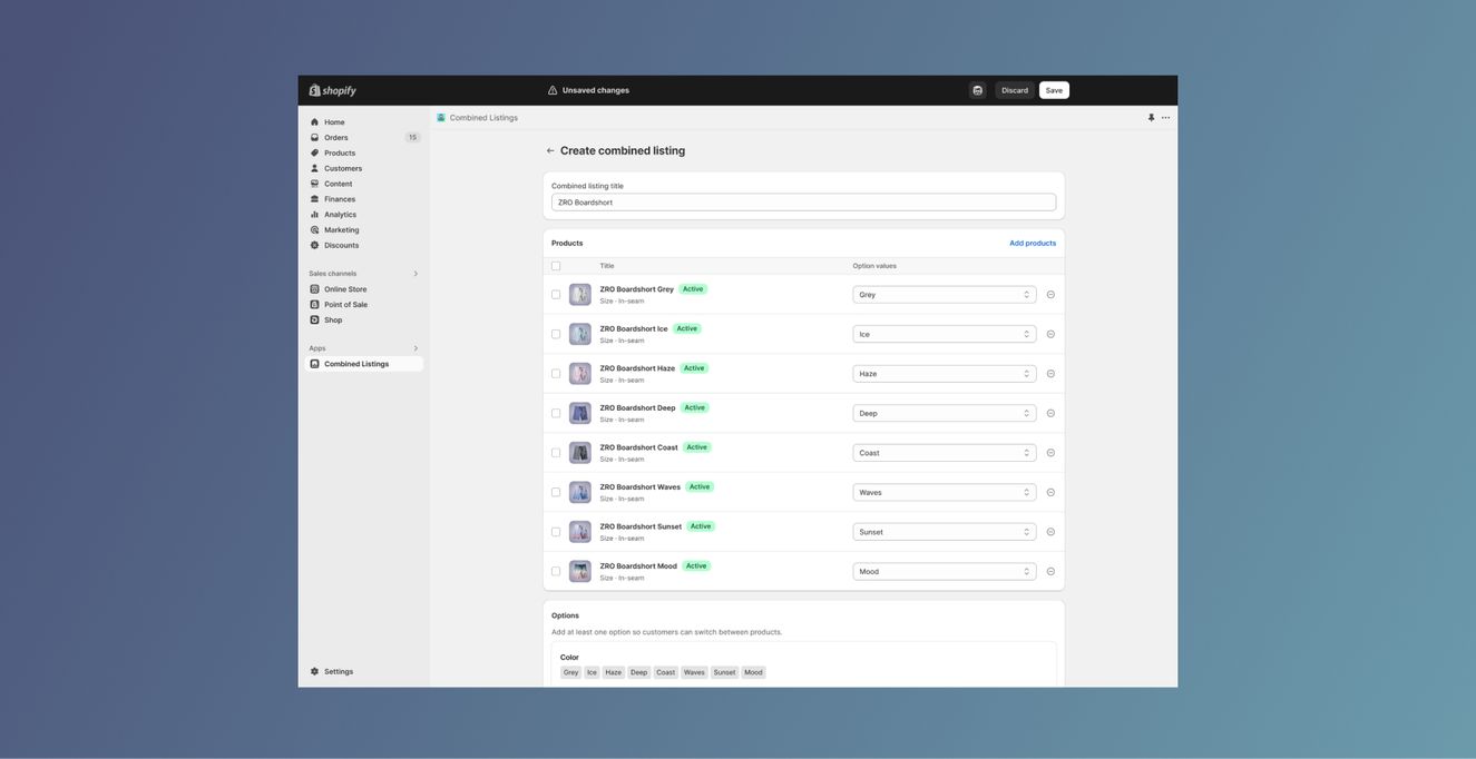 Shopify is also introducing a new Shopify Combined Listings App. You’ll only be able to use it if you’re on Shopify Plus – but, it makes the shopping experience even more seamless. Instead of hopping between separate PDPs to browse different colours, materials and dimensions of the same product, your users can see it all in one place.