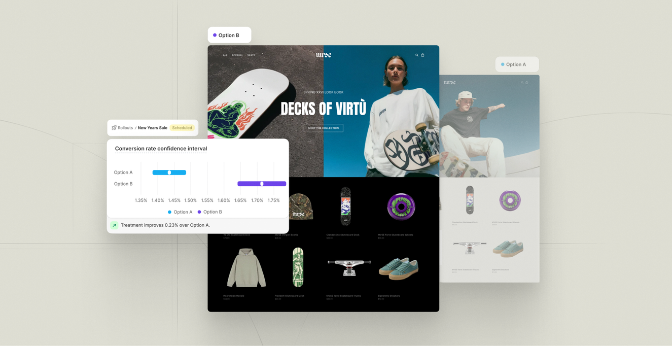 For years, proper split testing meant paying for Convert, Optimizely, or VWO—adding another monthly subscription and another potential point of failure. Rollouts brings native A/B testing into the admin, which means one less vendor to manage and testing that just works.
