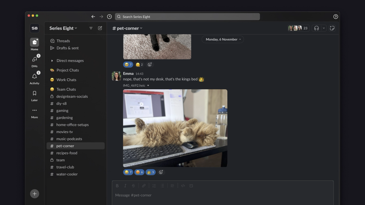 From projects to pets, you can bet there’s an S8 Slack channel for it. We use Slack for everything from general chit-chat to client comms – and we’re always searching for ways we can use it better.