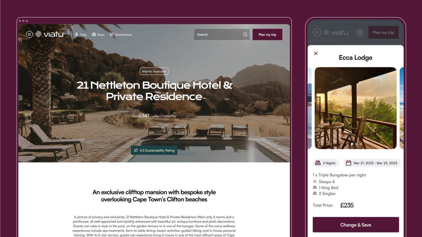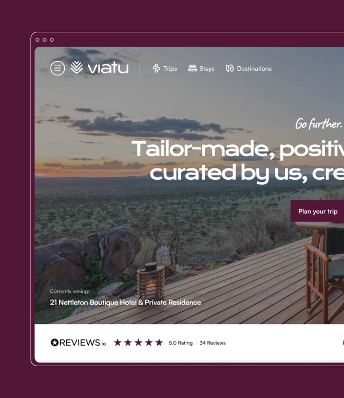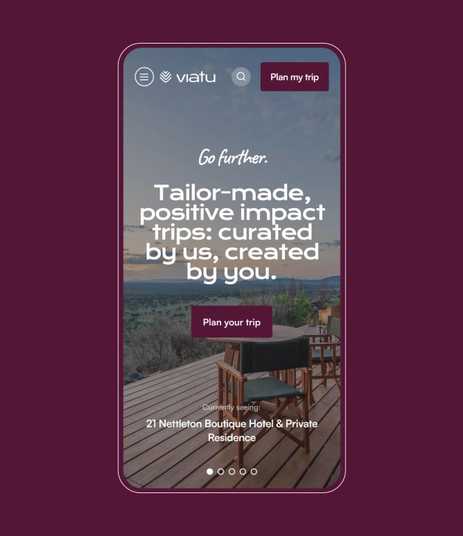 Up until now, the Viatu team’s main focus had been on developing the business’s bespoke trip booking system. But the time had come to replace the initial placeholder branding with a new visual and verbal identity – one that would elevate the business as it expands and better reflect what it really means to be responsible. Our role was to help create this new brand identity, translate it into an engaging online experience on the front-end, and make sure the entire user journey flowed seamlessly from start to finish.