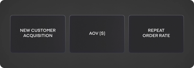 Looking at growth holistically, analysing how channels work together to increase new customer acquisition, AOV, and Repeat Orde Rate (ROR).